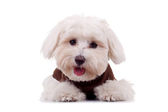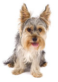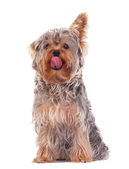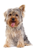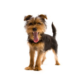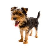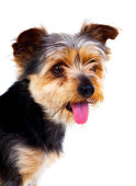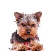 zbliżenie dwóch psów szczenię yorkshire zdzieranie kory