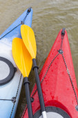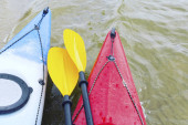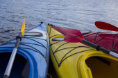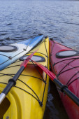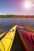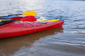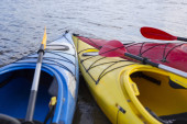 Camping na plaży. Kajak na plaży w słoneczny dzień.