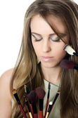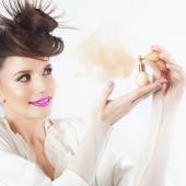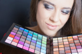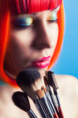 Zbliżenie kobiety w salonie kosmetycznym. Makijaż moda, fryzury fantazyjne