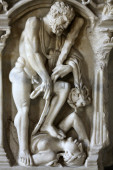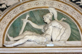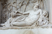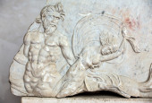 Płaskorzeźba na starożytny sarkofag w łaźni Dioklecjana w Rzymie. Włochy