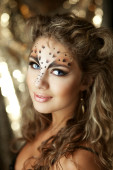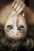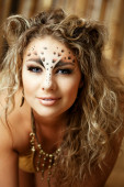 dziewczyna z niezwykłych makijaż jak Lampart i luksusowe włosów