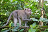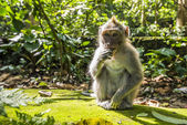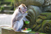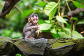 Long-tailed macaque (Macaca zmonopolizowanej) jedzeniu bananów w Sac