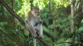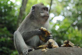Rodzina long-tailed macaque (Macaca zmonopolizowanej) w Sacred Mo