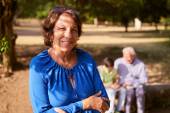 Szczęśliwy Senior babcia gry w piłkę nożną z rodziną