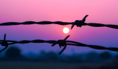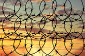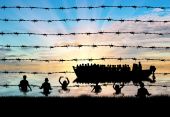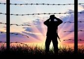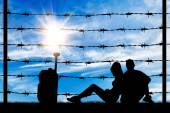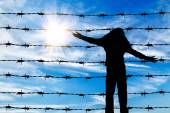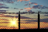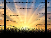 Sylwetka złamane granicy ogrodzenia z drutu kolczastego