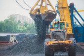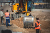 Zdjęcie "Żółty Ciężki Koparka i spychacz kopania piasku i pracę podczas robót drogowych, rozładunku piasek i żwir podczas budowy nowej drogi" może być wykorzystywane do celów osobistych i komercyjnych zgodnie z warunkami zakupionej licencji Royalty-free. Obraz jest dostępny do pobrania w jakości wysokiej rozdzielczości do 5760x3840.
