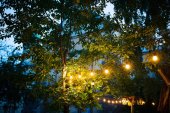 Rozmycie, lampy w nowoczesnej restauracji, ciepły odcień światła