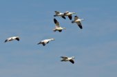 Ptaki śnieg gęsi migracji do Salton Sea na pustyni kalifornijskiej