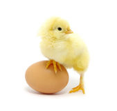 zbliżenie ładny mały kurczak z jajkiem na białym tle