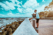 Przystojny mężczyzna z brodą, obserwując krajobraz miejski