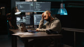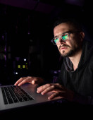 młody hacker rozwój złośliwego oprogramowania w ciemnym pokoju