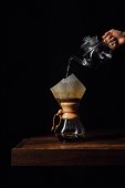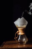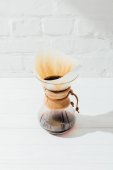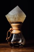 Zamiast kawy w chemex z filtr stożkowy na drewnianym stole
