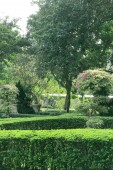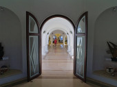Zewnątrz korytarzu Kościoła chrześcijańskiego z światło słoneczne, cień