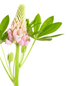 Łubin biały, powszechnie znany jako łubin lub Wilczy. Na białym tle.