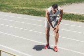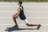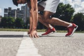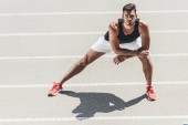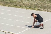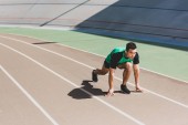 młody mężczyzna lekkoatleta specjalizujący się w pozycji wyjściowej na bieżnię