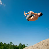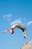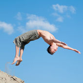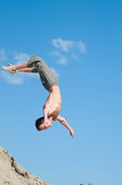 Zdjęcie "podekscytowany młody człowiek skoki w powietrzu" może być wykorzystywane do celów osobistych i komercyjnych zgodnie z warunkami zakupionej licencji Royalty-free. Obraz jest dostępny do pobrania w jakości wysokiej rozdzielczości do 5760x3840.