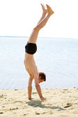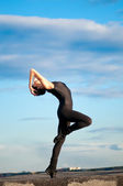 podekscytowany młody człowiek skoki w powietrzu