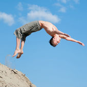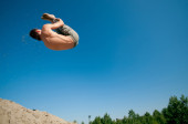 Zdjęcie "podekscytowany młody człowiek skoki w powietrzu" może być wykorzystywane do celów osobistych i komercyjnych zgodnie z warunkami zakupionej licencji Royalty-free. Obraz jest dostępny do pobrania w jakości wysokiej rozdzielczości do 5760x3840.