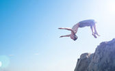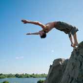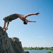 Zdjęcie "podekscytowany młody człowiek skoki w powietrzu" może być wykorzystywane do celów osobistych i komercyjnych zgodnie z warunkami zakupionej licencji Royalty-free. Obraz jest dostępny do pobrania w jakości wysokiej rozdzielczości do 5760x3840.