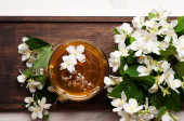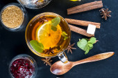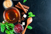 Zdjęcie "Herbaty ziołowe z limonki kwiaty w filiżance szkła na ciemnej powierzchni. Przydatne i smaczny napój. Środki Ludowej w leczeniu przeziębień. Od góry" może być wykorzystywane do celów osobistych i komercyjnych zgodnie z warunkami zakupionej licencji Royalty-free. Obraz jest dostępny do pobrania w jakości wysokiej rozdzielczości do 5760x3840.