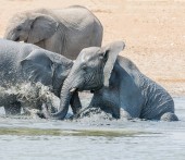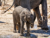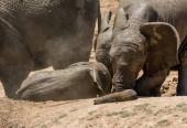 Zdjęcie "Dziecko słonia afrykańskiego biorąc mudbath z jego rodziny przy wodopoju w Namibii" może być wykorzystywane do celów osobistych i komercyjnych zgodnie z warunkami zakupionej licencji Royalty-free. Obraz jest dostępny do pobrania w jakości wysokiej rozdzielczości do 5760x3840.