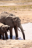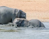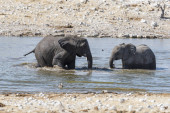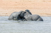 Słonie afrykańskie, kąpieli błotnych przy wodopoju w Namibii