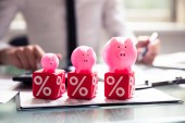 Zdjęcie "Zbliżenie, będący przedsiębiorcą strony budynku sześciennych bloków z symbolami procent na biurko" może być wykorzystywane do celów osobistych i komercyjnych zgodnie z warunkami zakupionej licencji Royalty-free. Obraz jest dostępny do pobrania w jakości wysokiej rozdzielczości do 5760x3840.