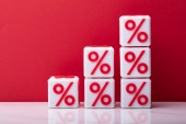 Zbliżenie, będący przedsiębiorcą strony budynku sześciennych bloków z symbolami procent na biurko