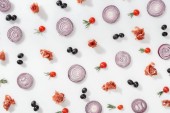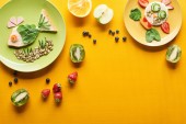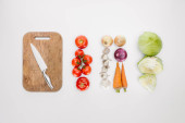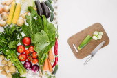 Widok z góry świeże surowe warzywa zdrowy na białych talerzach na białym tle