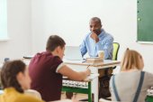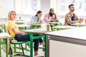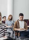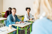 koncentruje się młodych studentów siedzi w klasie podczas lekcji