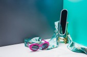 Zdjęcie "Zabawka lustro z jedwabny szal i naszyjnik z pereł w miniaturowe niebieski Pokój" może być wykorzystywane do celów osobistych i komercyjnych zgodnie z warunkami zakupionej licencji Royalty-free. Obraz jest dostępny do pobrania w jakości wysokiej rozdzielczości do 5760x3840.