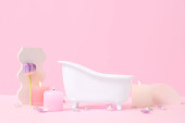 Zdjęcie "dostarcza wanna Zabawka z rzeczywistych rozmiarów higieny osobistej w miniaturowe różowy Pokój" może być wykorzystywane do celów osobistych i komercyjnych zgodnie z warunkami zakupionej licencji Royalty-free. Obraz jest dostępny do pobrania w jakości wysokiej rozdzielczości do 5760x3840.