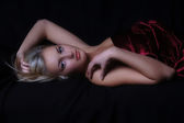 Modelu leżącego na czarny trener