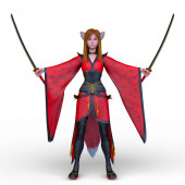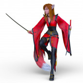 Zimno, elegancki, Hot piękna dziewczyna Samurai z Swords.Anime i styl kreskówka na białym tle na biały Background.Video gry cyfrowe Cg grafika, ilustracja koncepcja, realistyczny styl kreskówka projekt