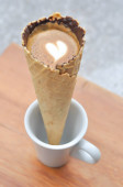 Zdjęcie "Stożka wafel kawę lub gorącą kawę w stożek lody" może być wykorzystywane do celów osobistych i komercyjnych zgodnie z warunkami zakupionej licencji Royalty-free. Obraz jest dostępny do pobrania w jakości wysokiej rozdzielczości do 5760x3840.
