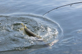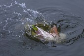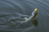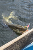 Szczupak ryba trofeum w wodzie z zalewaniem