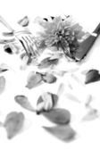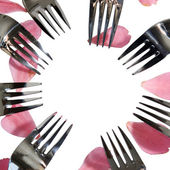 srebro i złoto widelce wokół kształtu serce z płatków róż
