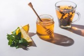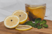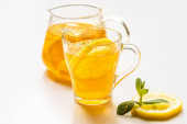 bardzo zdrowa herbata z cytryna i mięta na białym stole