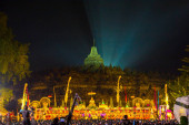 Borobudur, 29 maja 2018: Ludzie się razem festiwalu Lantern na świątyni Borobudur w przygotowaniu wydania