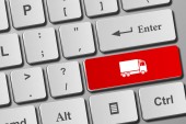 koncepcja online zakupy i dostawy. przycisk klawiatury laptopa z ciężarówka ikona