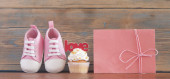 Ozdoba tło uroczysty urodziny obchody pyszne babeczki dla baby shower na podłoże drewniane