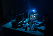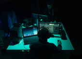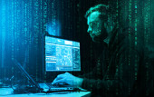 Zdjęcie "Poszukiwani hakerzy kodujący wirusy ransomware używając laptopów i komputerów. Koncepcja cyberataku, łamania systemu i złośliwego oprogramowania." może być wykorzystywane do celów osobistych i komercyjnych zgodnie z warunkami zakupionej licencji Royalty-free. Obraz jest dostępny do pobrania w jakości wysokiej rozdzielczości do 5760x3840.