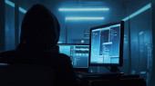 Poszukiwani hakerzy kodujący wirusy ransomware używając laptopów i komputerów. Koncepcja cyberataku, łamania systemu i złośliwego oprogramowania.