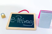 Tablica z napisem w niemieckim e prywatności epvo rozporządzenia w angielski E-prywatności rozporządzenia bloku i kłódki