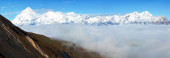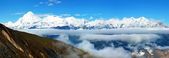Wieczorem panoramiczny pejzaż widok z Gokyo Ri do montażu Arakam Tse, Cholatse, Kangtega i Thamserku szczyt w okolicy Everest - park narodowy Sagarmatha, Dolina Khumbu, górach Himalajach Solukhumbu, Nepal
