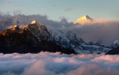 Zdjęcie "Wieczorem panoramiczny pejzaż widok z Gokyo Ri do montażu Arakam Tse, Cholatse, Kangtega i Thamserku szczyt w okolicy Everest - park narodowy Sagarmatha, Dolina Khumbu, górach Himalajach Solukhumbu, Nepal" może być wykorzystywane do celów osobistych i komercyjnych zgodnie z warunkami zakupionej licencji Royalty-free. Obraz jest dostępny do pobrania w jakości wysokiej rozdzielczości do 5760x3840.