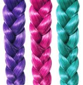 warkocz włosów, trzy szpule kolorowy na białym tle na białym tle, Pielęgnacja włosów