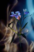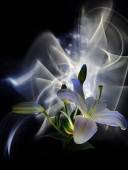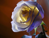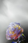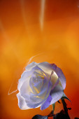 Róża biała z malowane przez wielobarwny światło na tle żółty, pomarańczowy, brązowy i biały blask wewnętrzny.
