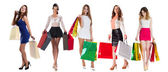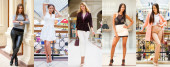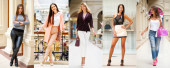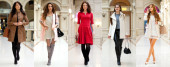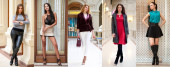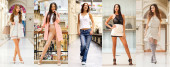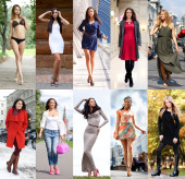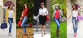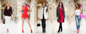 Kolaż z pięciu różnych młode dziewczyny w jasne ubrania modne