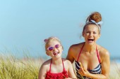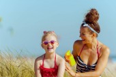 Zdjęcie "modny dziewczyna w czerwony strój kąpielowy zastosowaniu pomadki z spf, na wybrzeżu Oceanu. chronić włosy od słońca, ciepła i wilgotności przed wyruszeniem na plażę. Dzika plaża z zieloną trawę i nie ma ludzi." może być wykorzystywane do celów osobistych i komercyjnych zgodnie z warunkami zakupionej licencji Royalty-free. Obraz jest dostępny do pobrania w jakości wysokiej rozdzielczości do 5760x3840.